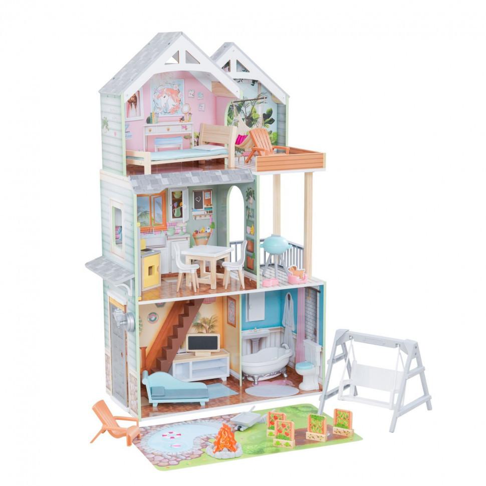 Деревянный кукольный домик "Хэлли", с мебелью 31 предмет в наборе, свет, звук, для кукол 30 см
