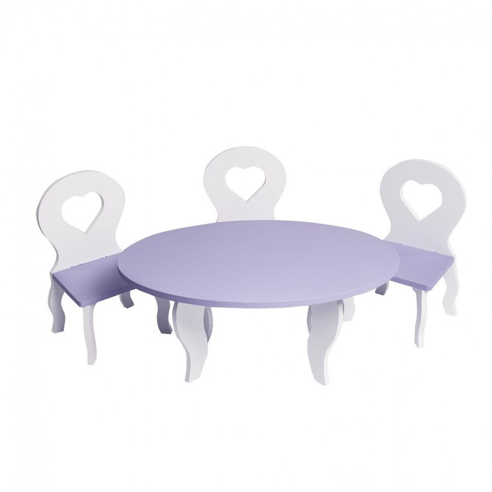 Набор мебели для кукол Шик Мини: стол + стулья, цвет: белый/фиолетовый