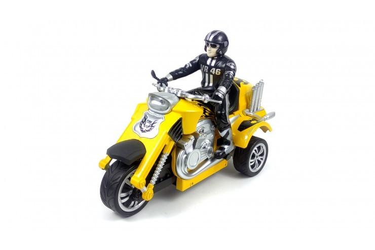 Устойчивая модель трехколесного мотоцикла, выполненная в масштабе 1:10! Обратите внимание, на стильный дизайн этой игрушки.Вы можете рассмотреть не только детали мотоцикла, но и улыбку на лице гонщика. У него на носу темные очки? Разумеется! Изучение этой модели доставит детям и взрослым море положительных эмоций!Однако, по настоящему уникальным этот трехколесный мотоцикл делают его особые технические характеристики: модель обладает возможностью двигаться в любом направлении, сохранять устойчивость даже на неровных поверхностях, выполнять головокружительные повороты!Трехколесный мотоцикл обязательно привлечет внимание ваших детей! Только взгляните на эти сияющие фары и стильный корпус.Аккумулятор надо заряжать не меньше трех часов, однако и время работы у этой игрушки целых 20 минут. Хотите гонять дольше? Тогда просто закажите запасной аккумулятор.Замечательная модель для подарка подростку и взрослому любителю радиоуправляемых мотоциклов Размеры мотоцикла: 30х13х20 (см).Аккумулятор: 6V 700mAh.Дальность управления: 20 м.Светящиеся фары.Необходимо докупить в пульт 3 АА батарейки.